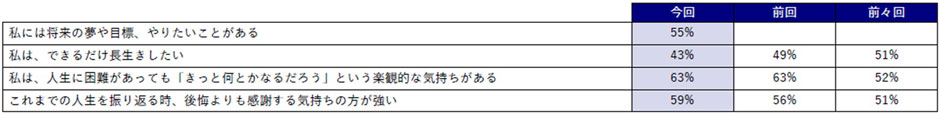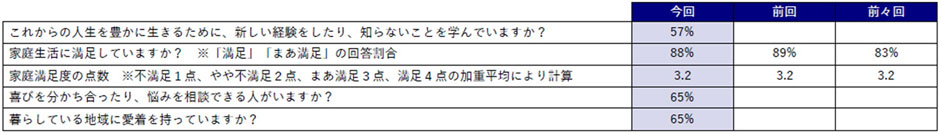 ※すべての表に関して、前回・前々回の調査結果がない項目は、空欄(数値なし)で表示されます。