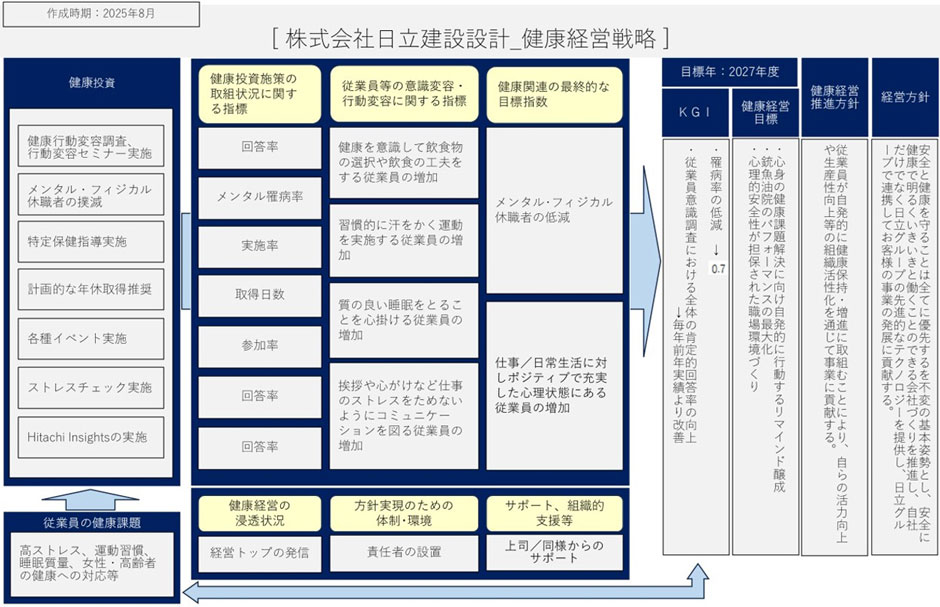 また、株式会社日立建設設計の全従業員が、安全に健康で明るくいきいきと働くことのできる会社づくりに努めることを宣言します。