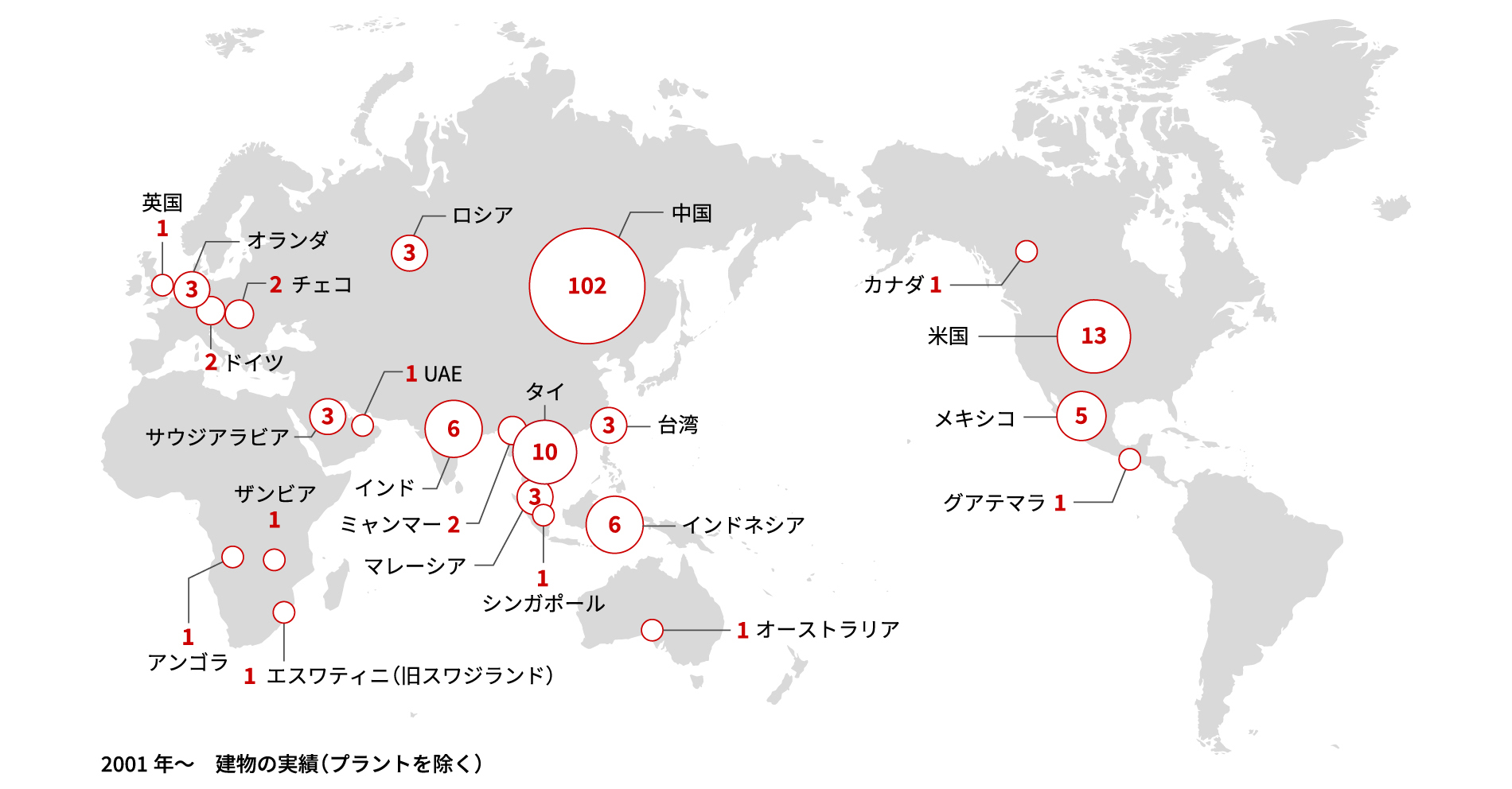 当社はこれまで50年以上にわたり世界各地で200件以上に及ぶ海外企業進出の建設事業支援のコンサルティングの実績を有しています。