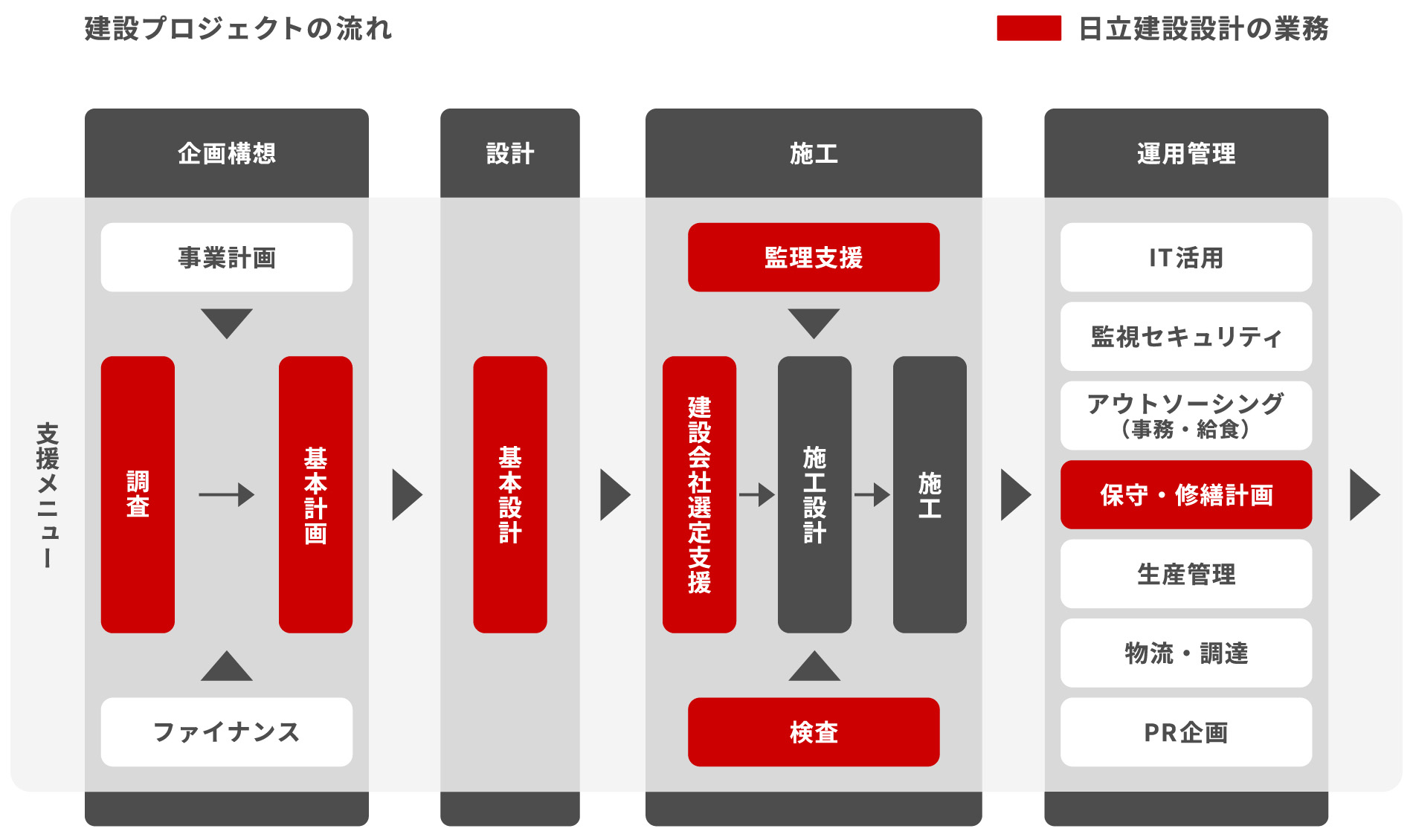 日立グループの総力を結集し、プロジェクトのあらゆる場面で総合的に支援します。